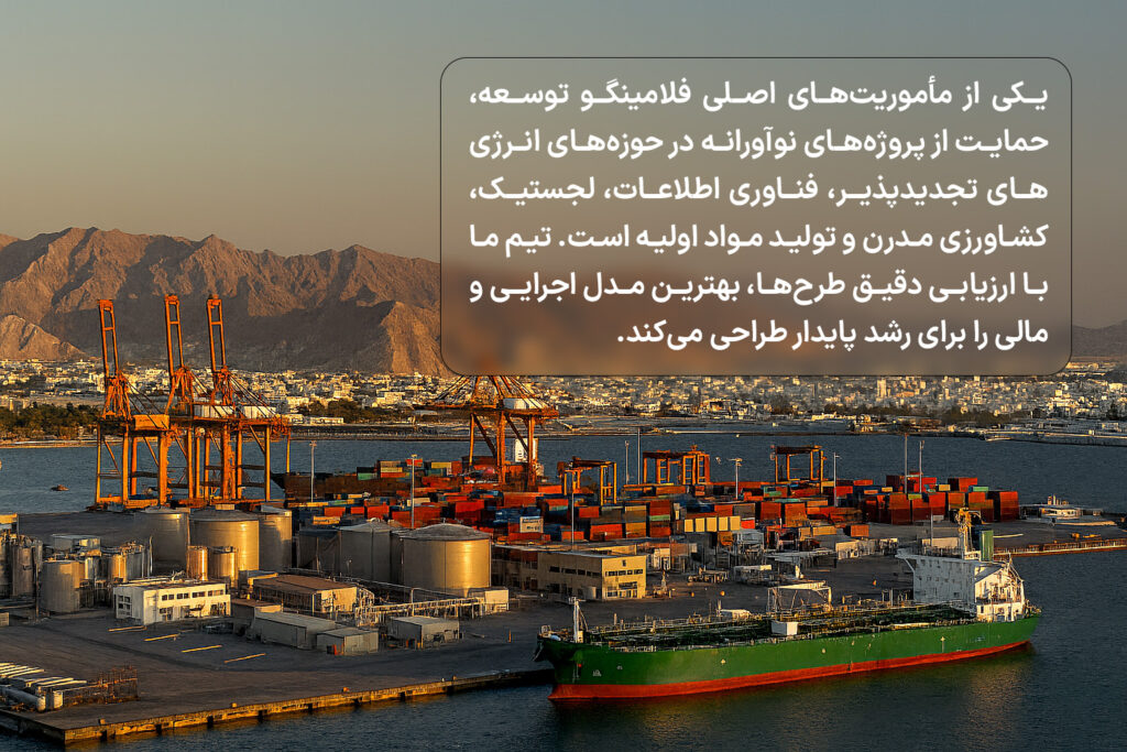 فلامینگو توسعه با طراحی مدلهای مالی، ارزیابی ریسک و اجرای زیرساختهای صنعتی، سرمایهگذاران را از مرحله امکانسنجی تا بهرهبرداری و صادرات همراهی میکند.